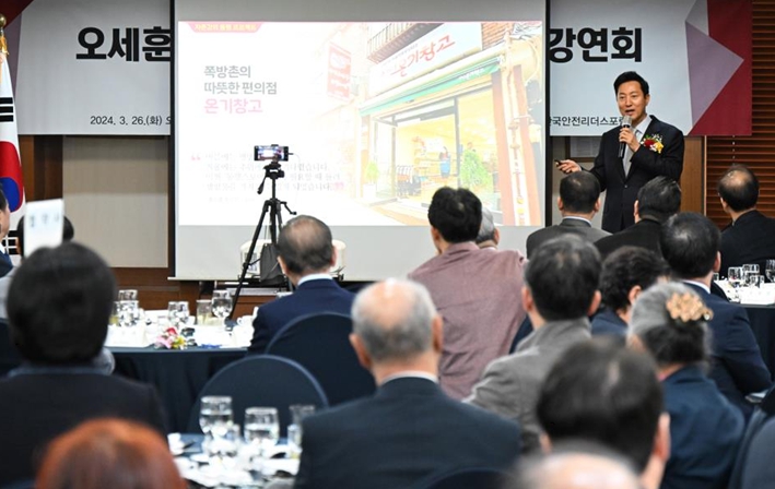 [뉴스서울] 오세훈 서울시장은 26일 오전 8시, 한국프레스센터(중구 세종대로124)에서 열린 ‘한국안전리더스포럼’에 참석해 특별 초청강연을 펼쳤다. 강연은 안전부처 전직 장·차관, 안전 관련 협회장, 기업인 등 총 100여 명이 참석한 가운데 50분 동안 진행됐다.