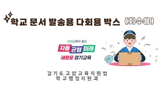 [뉴스서울] 고양교육지원청은 2024년 3월부터 시설관리직원이 없는 관내 73개교를 대상으로 교육지원청 문서수발함 내 문서 등을 학교로 배송해주는 서비스를 시행한다.