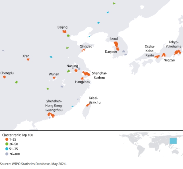 2024년 5대 세계적 협력지구(클러스터)는 서울(4위) 외에 도쿄·요코하마 1위, 선전·홍콩·광저우 2위, 북경 3위, 상하이·쑤저우 5위로 한·중·일의 협력지구(클러스터)가 선정되어 동아시아가 세계 혁신의 중심지로서의 지위를 공고히 하고 있음을 보여주었다.