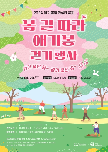20일 봄맞이 걷기 행사 이후에는 오후 8시까지 문화예술공연과 시민참여 프로그램이 마련돼 있으며, 무엇보다 아름다운 애기봉의 풍경을 만날 수 있어 애기봉의 하루가 특별하고 즐거워질 것으로 기대된다.