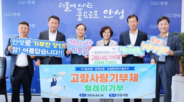 [뉴스서울] 안성시는 지난 16일 시장실에서 안성 출신 농협중앙회와 서서울농협 임직원들이 고향사랑기부제의 성공적인 정착과 안성시 발전을 위해 작년에 이어 올해도고향사랑기부 릴레이에 동참했다고 밝혔다.