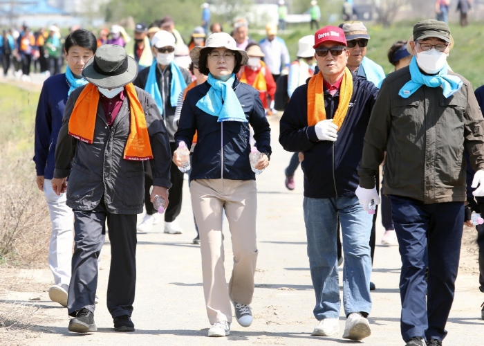 이번 행사에는 김보라 안성시장을 비롯, 지역 어르신 400여명이 참석했으며, 보건소 전문강사로부터 올바른 걷기 방법 강습과 간단한 준비체조 후 대림동산 축구장에서 한천변 산책코스를 한바퀴 돌아 다시 대림동산 축구장으로 돌아오는 약 2km 구간을 걸었다.