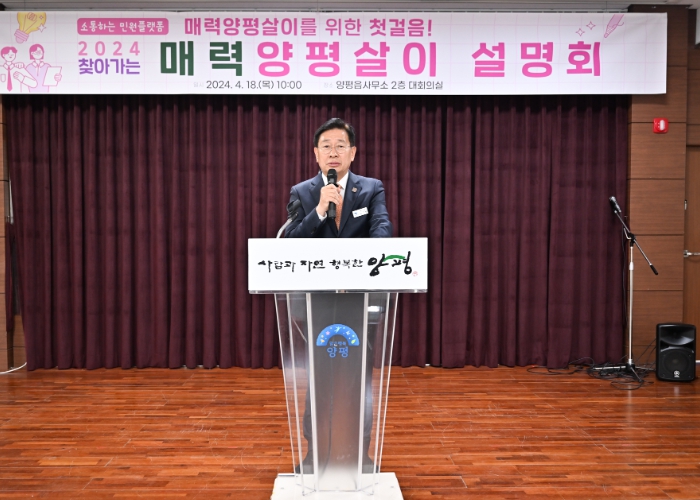 전진선 양평군수는 “오늘 설명회에 대구를 포함한 해외 이주민도 참석해 주셔서 감사하다”면서 “선주민에게는 몰랐던 양평의 역사․문화․환경 등의 이야기를 아는 계기가 되고, 후주민에게는 양평살이의 모든 것이 분야별로 정리된 양평살이 안내서를 통해 양평군의 성공적인 정착에 큰 도움이 되길 바란다”며 “앞으로도 선주민과 후주민이 하나로 화합하는 살기좋은 양평만들기에 최선을 다하겠다”고 말했다.