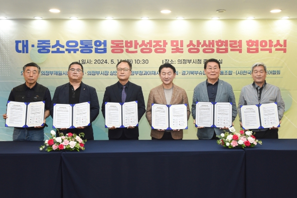 시는 5월 14일 시청 중회의실에서 제일시장번영회, 의정부시장상인회, 청과야채시장상인회, 경기북부슈퍼마켓협동조합, (사)한국체인스토어와 ‘대‧중소유통업 동반성장 및 상생협력 협약’을 체결했다.