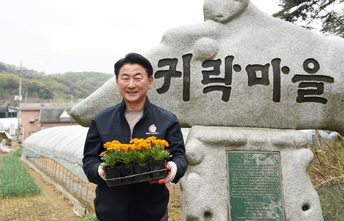 행사를 통해 귀락마을의 자랑인 행복나눔목공소 주변에 백일홍, 해바라기, 메리골드 등 다양한 꽃모종을 심어 마을 이미지를 한층 개선했다.
