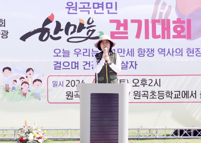 이종승 원곡면 체육회장은 “지역 주민분들께서 관심을 갖고 참석해 주셔서 감사드리며, 한마음 걷기대회를 통해 건강증진 및 주민화합과 4.1.항쟁의 의미를 되새기는 의미 있는 자리가 됐으면 한다”며 “앞으로 원곡면 체육회가 지역 주민의 체육사업 활성화에도 적극 노력하겠다”고 말했다.