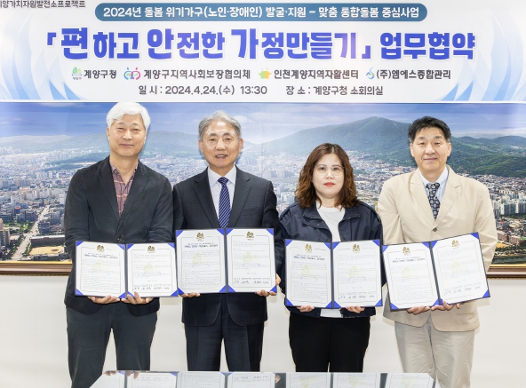 [뉴스서울] 인천광역시 계양구가 지난 24일 계양구지역사회보장협의체, 계양지역자활센터, 자활기업 ㈜엠에스종합관리와 돌봄 위기가구 맞춤형 주거환경 개선을 위한 ‘편하고 안전한 가정만들기’ 업무협약을 체결했다.