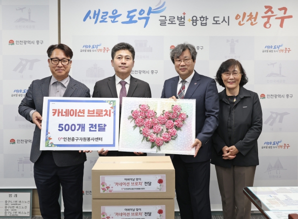 ▲ 인천중구자원봉사센터, ‘카네이션 브로치’전달 |