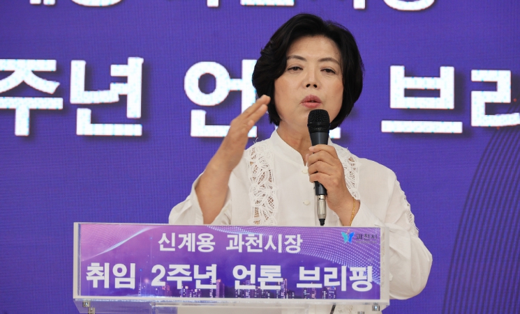 | ▲ ‘민선8기 2주년 언론 브리핑’하는 신계용 과천시장 |