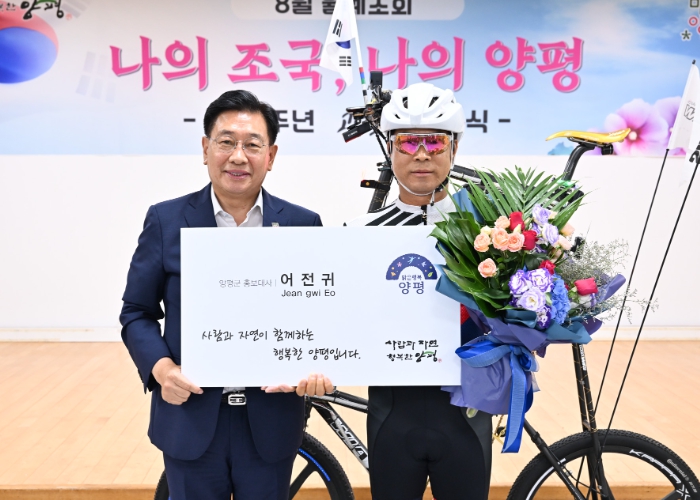 이에 전진선 군수는 “양평군 홍보대사가 되어주신 어전귀님께 진심으로 감사드리며, 양평과 뜻 깊은 인연을 이어가게 된 만큼, 우리군을 알리는 중요한 역할을 해주시길 바란다”면서 “양평군이 교육지원청과 협력해 관내 초등 4학년 학생들을 대상으로 자전거 교육을 실시할 예정인데, 수도권 명실상부 자전거특구 입지를 더욱 공고히 할 수 있도록 홍보대사님과도 뜻을 함께하겠다”고 말했다.