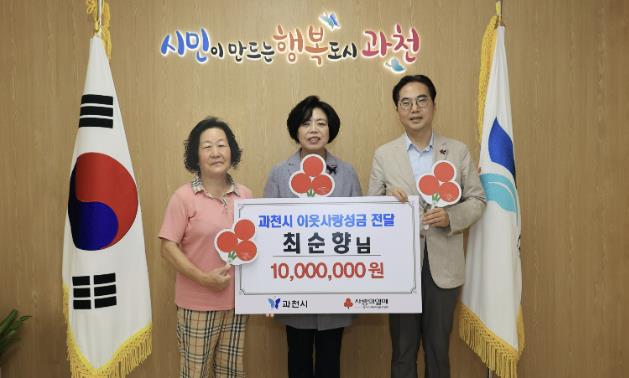 [뉴스서울] 꾸준한 기부로 이웃사랑을 실천하고 있는 최순향 씨가 올해도 과천시에 1천만 원의 기부금을 전달했다.