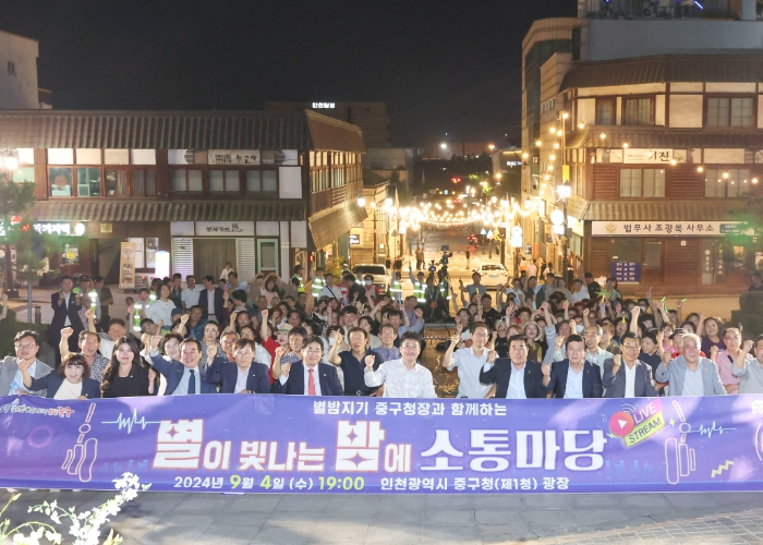 인천시 중구는 지난 4일 저녁 7시부터 중구청 제1청 광장 앞에서 ‘별밤지기 중구청장과 함께하는 – 별이 빛나는 밤에 소통마당’을 주민들의 뜨거운 호응 속에 개최했다.