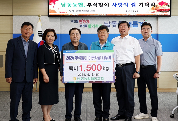 박종효 남동구청장은 “매년 저소득 이웃들을 위한 후원 금품을 기부해 주시는 남동농업협동조합에 매우 감사드리며 기탁해 주신 백미가 필요한 곳에 쓰일 수 있도록 최선을 다하겠다”라고 밝혔다.