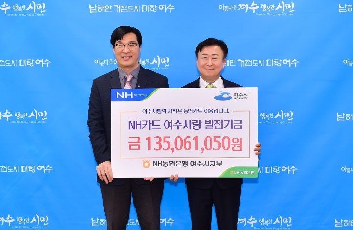 한편 NH은행 여수시지부는 지난 2001년부터 매년 여수시에 카드 적립기금을 전달하고 있다.