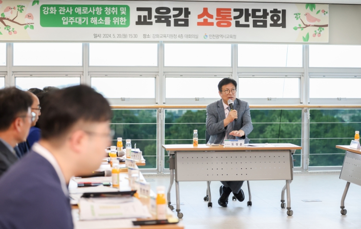 [뉴스서울] 도성훈 인천광역시교육감은 20일 인천강화교육지원청 4층 대회의실에서 강화도 내 관사 관리 및 거주 교직원의 애로사항과 건의 사항을 청취하고 이를 해결하기 위해 소통간담회를 실시했다.