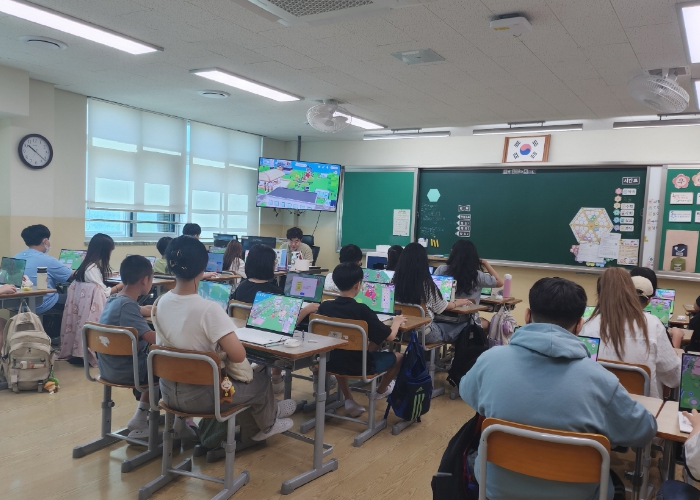 이번 교육은 행전안전부가 인공지능(AI) 메타버스 플랫폼 ‘플레이스비’를 토대로 개발한 디지털교과서를 활용, 어린이들이 도로명주소에 대해 더욱 효과적으로 배울 수 있도록 한 것이 특징이다.