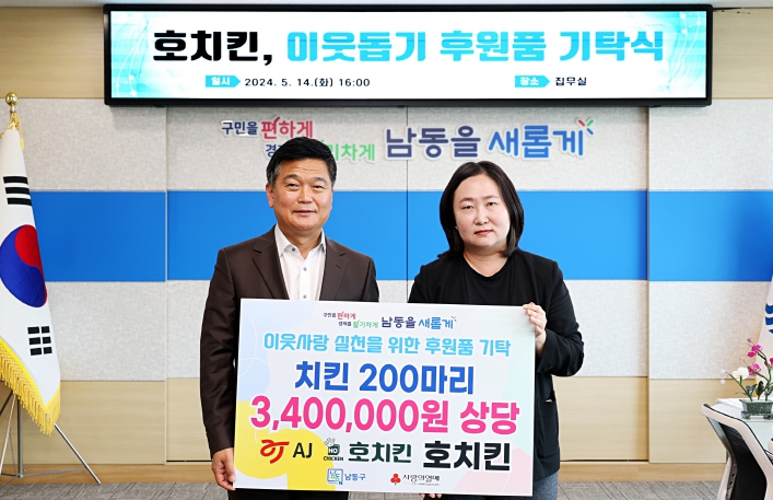 [뉴스서울] 인천시 남동구는 서울호치킨(김홍석 대표)으로부터 지역 내 취약계층을 위한 후원품 치킨 200마리(340만 원 상당)를 기탁받았다고 지난 17일 밝혔다.