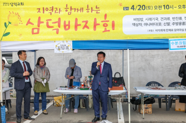 류규하 중구청장은 “경제적으로 어려운 상황에 주민들에게 값싸고 질 좋은 물건들을 판매하는 자리를 마련해 준 삼덕교회에 감사드린다”며 “구에서도 지역주민과 소외계층 없는 행복한 중구를 만들기 위해 최선을 다하겠다”고 말했다.