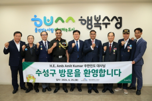 이 자리에서 아밋 쿠마르 주한 인도대사는 6·25전쟁 참전 인도군의 활약상을 담은 기념 책자를 전달하며 “인도와 대구 수성구가 교류 강화를 통해 경제·사회·문화 발전을 함께 이뤄가길 바란다”고 말했다.