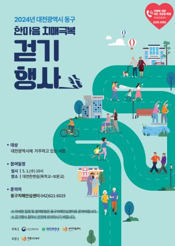 [뉴스서울] 대전 동구는 다음 달 1일 목척교 일원에서 치매 예방 및 치매 인식개선을 위한 ‘2024 한마음 치매극복 걷기행사’를 개최한다고 22일 밝혔다.