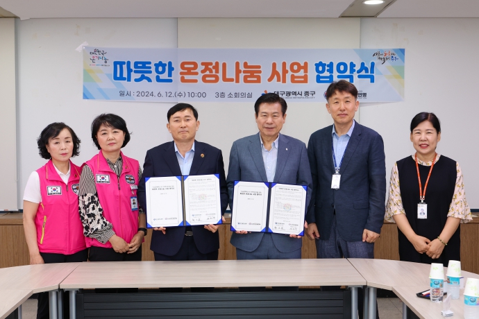 [뉴스서울] 대구 중구는 지난 12일 중구청에서 (사)한국나눔연맹과 지역 내 저소득 취약계층 지원과 유기적인 상호협력체계 구축을 위한 ‘따뜻한 온정나눔 협약’을 체결했다.
