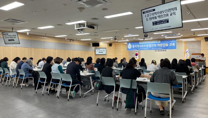 [뉴스서울] 대구 수성구는 지난 10일 지역사회보장협의체 활성화를 위해 23개 동 지역사회보장협의체 위원장과 동장, 찾아가는복지전담팀장 등을 대상으로 협의체 역량강화교육 ‘행복수성 복지학교’를 실시했다.