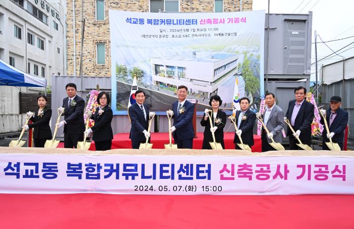 [뉴스서울] 대전 중구는 7일 김제선 중구청장을 비롯해 박용갑 국회의원 당선자 등 주요 내빈과 지역주민 40여 명이 참석한 가운데 석교동 복합커뮤니티센터 신축공사 기공식을 개최했다고 밝혔다.