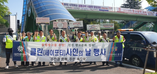 [뉴스서울] 대전 중구는 4일 추석 명절을 맞아 안전하고 쾌적한 도시경관 조성을 위해'Clean·Safety-Sign의 날' 행사를 실시했다고 밝혔다.