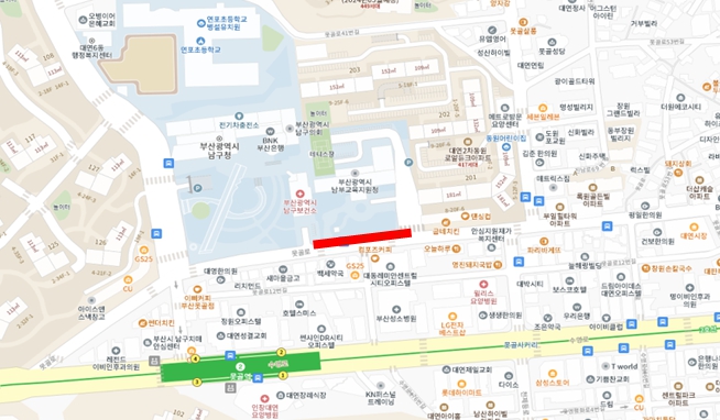 | ▲ 부산 남구, 남부교육지원청 앞 보도확장공사 착공 |