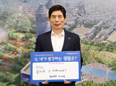 이번 ‘청렴다짐 챌린지’는 5급이상 간부공무원을 대상으로 본인의 청렴실천 다짐이나 명언 등을 친필로 작성해 인증사진을 내부 행정망 및 SNS 등에 게시로 직원과 공유하고 다음 주자를 지목하는 릴레이 방식으로 진행된다.