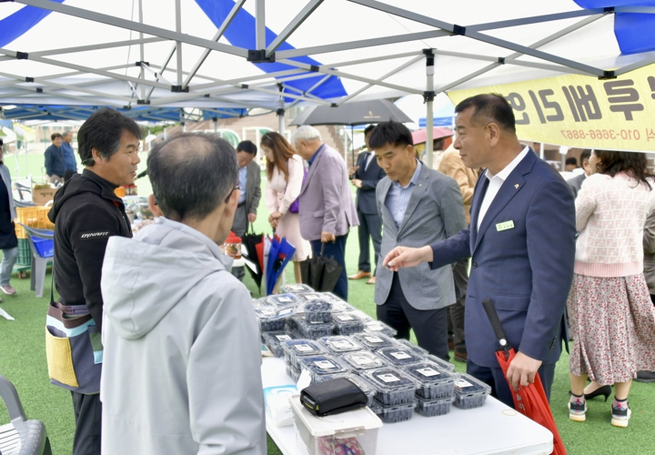 관내 20여 농가와 세종공주축협 등이 참여한 장터에서는 각종 잡곡류, 블루베리, 알밤, 오이, 고추 등 1차 농산물과 청국장 등 가공식품, 알밤한우 등 100여 품목이 시중 가격보다 10~30% 이상 저렴한 가격으로 판매됐다.