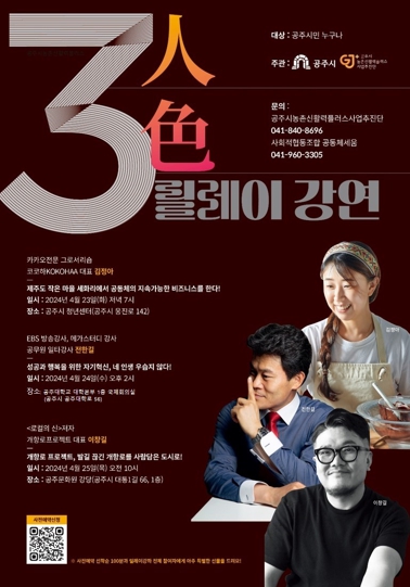 [뉴스서울] 공주시는 공주시 농촌신활력플러스사업으로 진행하는 ‘공동체경제 아카데미 명사특강’을 3회에 걸쳐 개최한다고 22일 밝혔다.