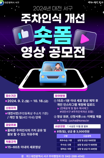 ▲ 대전 서구, 주차인식 개선 숏폼 영상 공모전 개최 |