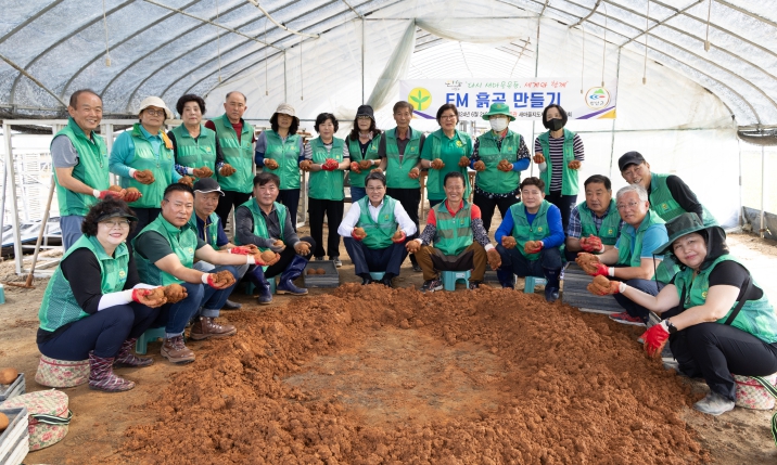 ▲ 새마을지도자 청양군협의회 미생물 복합체(EM) 흙공 만들기 사업 |