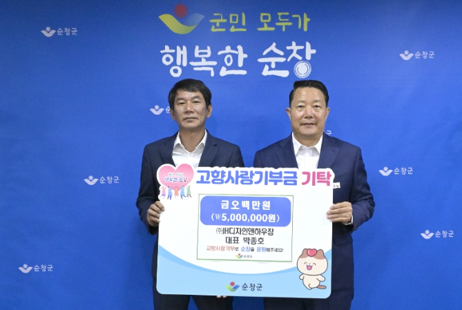 [뉴스서울] 순창군은 3일 ㈜JH디자인앤하우징 박종호 대표가 고향사랑기부금 개인 최고액인 500만원을 기탁했다고 밝혔다.