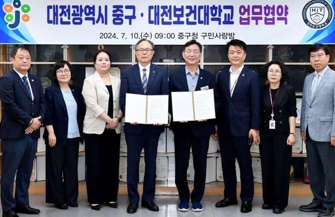 [뉴스서울] 대전 중구는 10일 대전보건대학교와 글로컬 보건인재 양성 및 취업지원 협력체계 구축을 위한 업무협약(MOU)을 체결했다고 밝혔다.