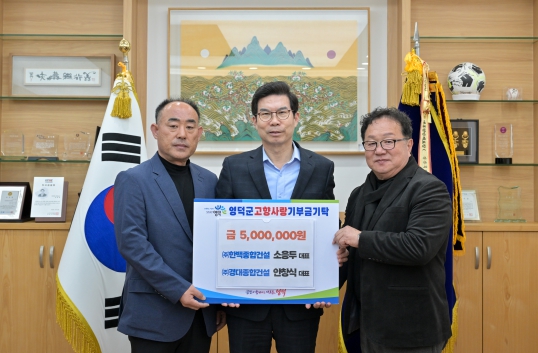 지난 26일 ㈜한백종합건설 소응두 대표와 ㈜경대종합건설 안창식 대표가 김광열 영덕군수를 만나 각각 250만 원씩 500만 원을, ㈜이넷종합기술 이상윤 대표가 200만 원, ㈜서울전설 조성대 대표가 100만 원, ㈜경일소방 이동걸 대표가 200만 원으로 총 500만 원을 기부했다.