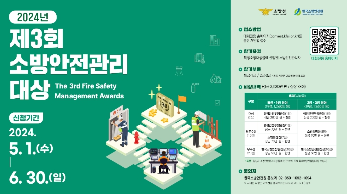 참가분야는 ▲특급‧1급 분야 ▲2‧3급 분야 총 2개 분야로 진행되며, 전국의 소방안전관리 대상물에 근무하는 소방안전관리자라면 누구나 신청할 수 있다.