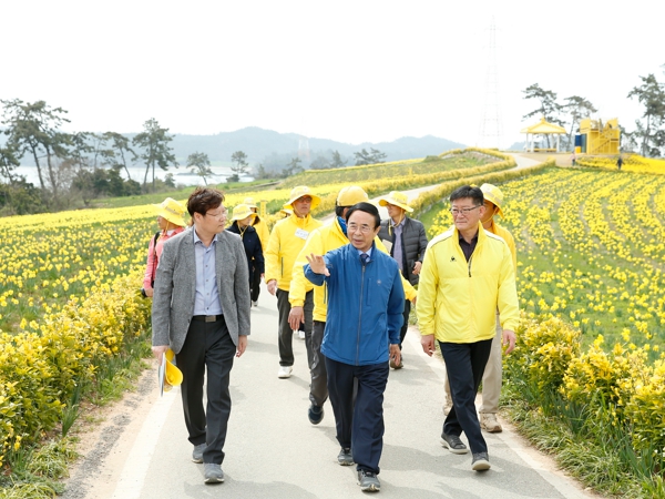 심 민 군수는 지난 2일 경관 조성 담당 공무원들과 함께 전남 신안군 선도 수선화의 섬을 방문했다.