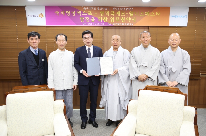 [뉴스서울] (재)영덕문화관광재단과 동국대학교 불교학술원(원장 정묵스님)은 지난 3월 13일 오전 11시 30분 서울국제명상엑스포와 영덕국제H-웰니스페스타 사업의 상호 교류 및 발전을 위한 업무협약을 체결했다.