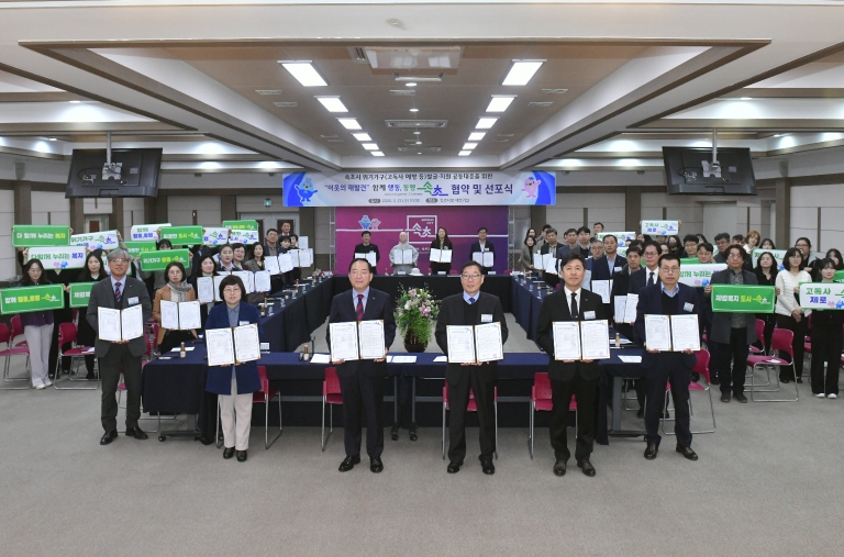 협약식은 속초시장을 비롯한 각 기관의 대표와 직원 등 60여 명이 참석한 가운데 속초시청 대회의실에서 진행됐으며, '함께 행동, 동행 속초'라는 슬로건 아래, 속초시 복지 사각지대 발굴 지역연대를 구성하고, 복지자원 연계 및 지원 등 각 기관이 상호 협력하여 시민 모두가 누릴 수 있는 촘촘한 복지 안전망 구축을 위해 함께 힘을 쏟을 것을 결의했다.