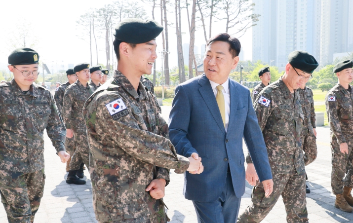 투어 시작 전, 김관영 도지사는 도청 광장에서 장병들의 노고를 치하하는 자리를 마련하고 장병들을 격려했다.