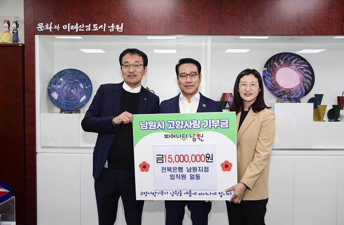 최경식 남원시장은 “고향사랑기부제를 내 일처럼 여기고, 기부문화 조성을 위해 힘써주신 전북은행과 남원지점 임직원 여러분께 진심으로 감사드린다”고 인사를 전했다.