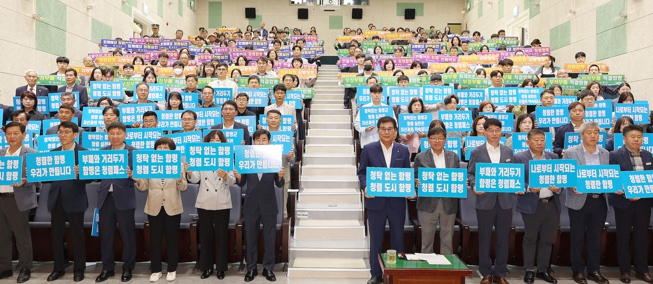 이날 이상익 군수를 비롯한 공무원 270명은 ▲지위·권한 남용 근절 ▲알선·청탁행위 금지 ▲금품·향응 수수 금지 ▲이권 개입 및 외압 배제 등의 내용을 담은 청렴 결의문을 낭독하고 청렴 실천 의지를 다졌다.