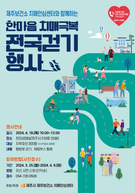 [뉴스서울] 제주보건소 치매안심센터는 4월 18일 한라생태숲에서 열리는 한마음 치매극복 전국 걷기행사 참여자 200명을 선착순으로 모집한다.