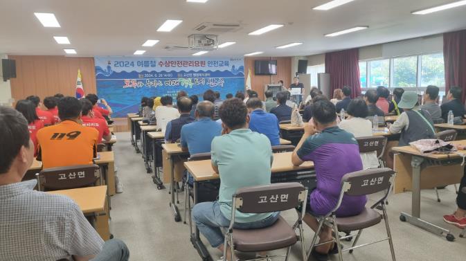 지난 26일 완주군은 고산면 행정복지센터 2층에서 2024년 여름철 수상안전 관리구역에 배치될 안전관리요원 42명과 완주 소방서에서 운영하는 119 수상 시민구조대 12명을 대상으로 안전교육을 실시했다.