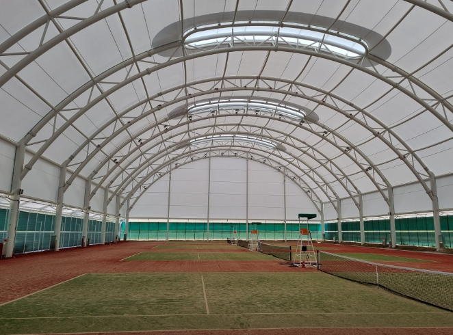 총 40여억 원의 사업비가 투입된 실내 테니스장은 두산리 일원 31,876㎡ 규모 부지에 테니스 코트 4면과 관리사 1동 등 4,098㎡의 시설을 포함한 막구조로 조성됐다.