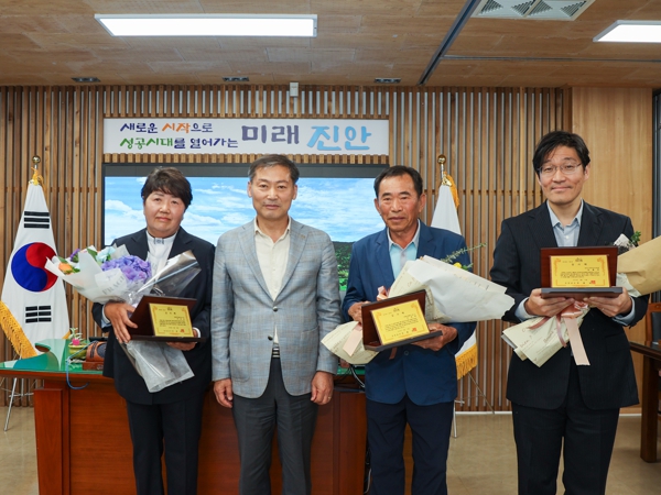 [뉴스서울] 진안군은 지난 13일 군수실에서 군정발전을 위해 적극적으로 노력한 유공자 3명에게 감사패를 수여했다.