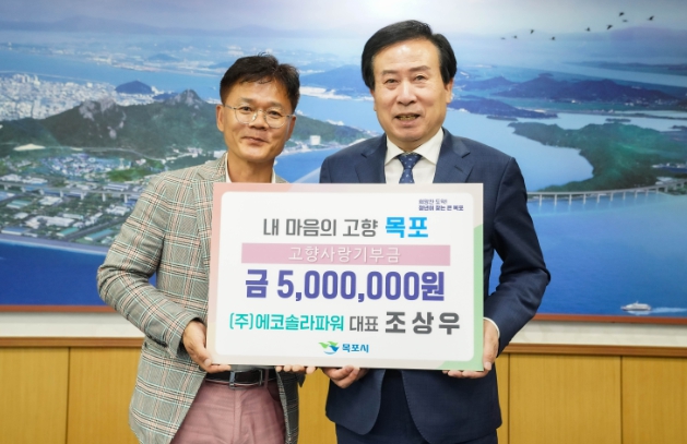 [뉴스서울] ㈜에코솔라파워 조상우 대표가 지난 3일 목포시에 고향사랑 기부최고액 500만원을 기탁했다.
