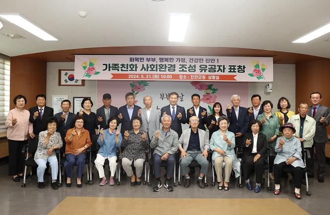 표창자는 ▲진안읍 김규열, 박공님 ▲진안읍 서귀동, 이순덕 ▲용담면 배병선, 전숙이 ▲안천면 황의택, 송순옥, ▲동향면 김병기, 김윤임 ▲상전면 유상운, 김영이▲백운면 전병무, 안선애 ▲성수면 김회선, 장재순 ▲마령면 박승율, 정주희 ▲부귀면 장진문, 임일례 ▲정천면 신영주, 이삼순 ▲주천면 안봉주, 한정조 총 12쌍의 부부다.